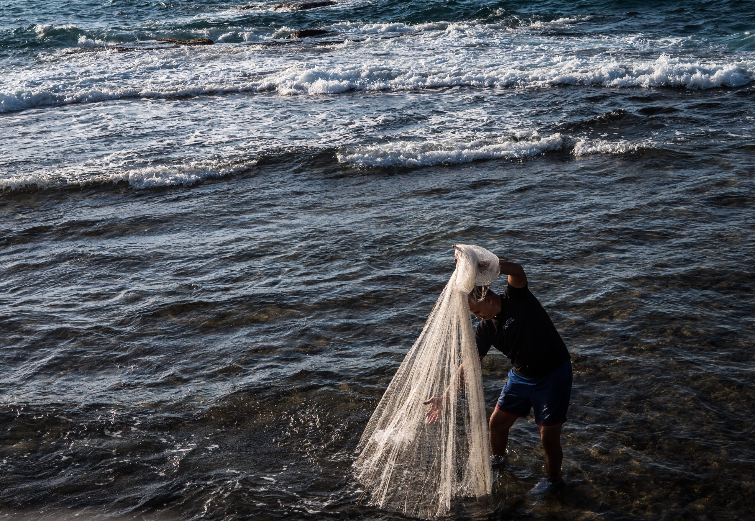 The sea captivates me. The fishermen who work at the sea intrigue me. The port city of Akko has also been the victim of rockets in this recent war – yet the people go on living. The sea pulses on with its waves and the human connection of its fishermen. I had never seen this form of fishing with the net (and not a fishing rod) until I visited Akko. Now I see it more and more!