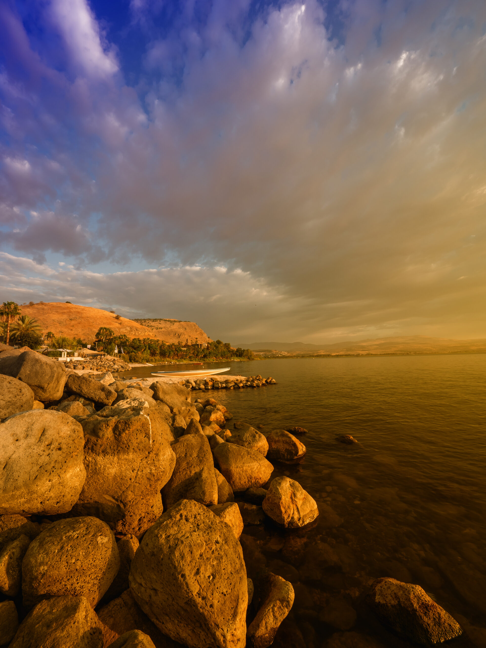 A major dilemma I face is early in the morning. I am a runner. I get up very early to get my workout in, 6 days a week. When I go out and see a beautiful scene draped with beautiful light I am tempted to run back and get my camera. But, then, what happens with my workout. Sometimes I have to make a choice. Or, the best situation is when I can get up extra early – get my run in and then get right back to shoot. That is what happened here on a family vacation in a town called Migdal, just north of Tiberias. The sunrise was magnificent and the sea teamed up with the sun to help me capture this majesty.