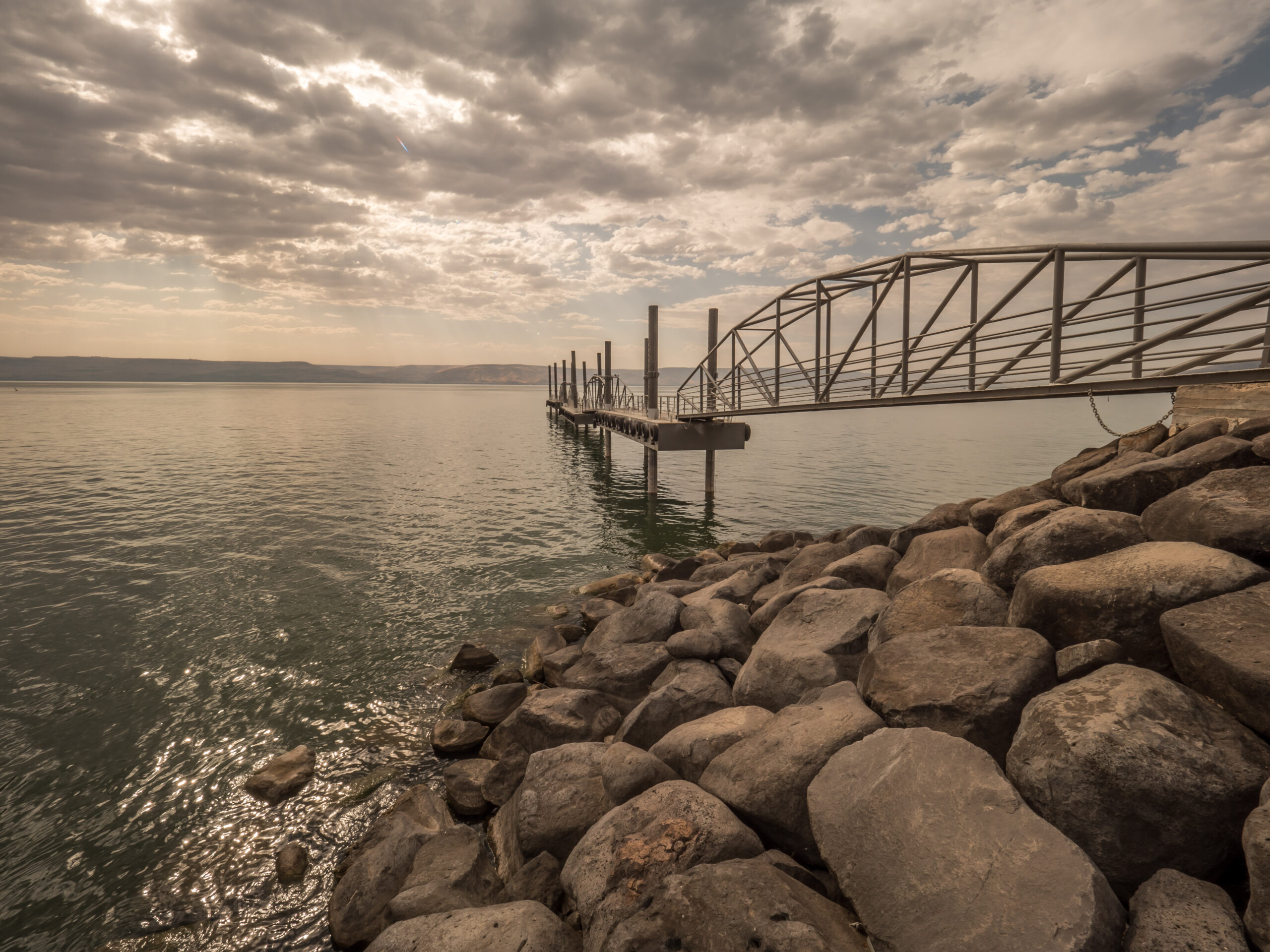 As much as I love water, I also love bridges. Bridges often come together with water! Just north of Tiberias is a Kibbutz called Ginnosar. On our trips up north, I often take my camera to this exact spot. I was blessed with a dramatic sky, as the coastal rocks lead us to the bridge, the bridge leads us to the horizon and the mountains in the distance. We can almost touch it by connecting one to the other.